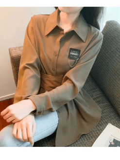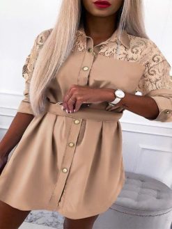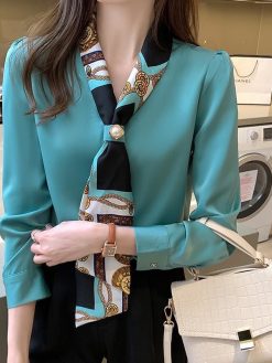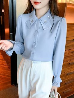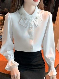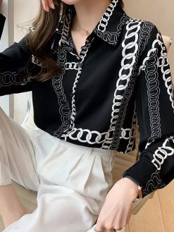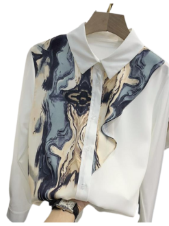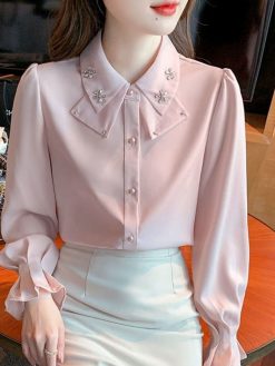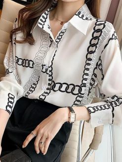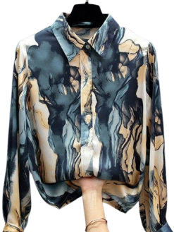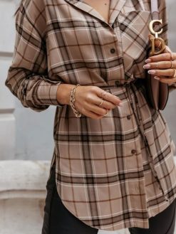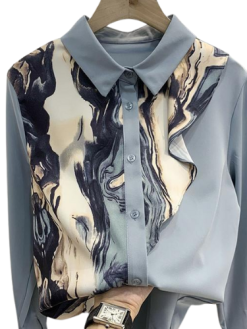 Women’s Blouse Printed Shirt Long Sleeve Button Shirt Collar Work Basic Essential Daily | Nude