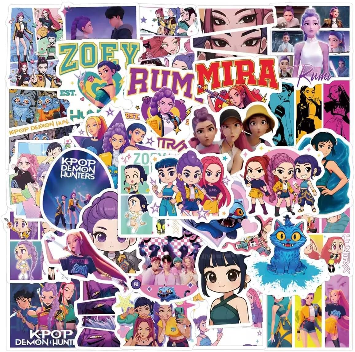 110Pcs Demon Hunters Vinyl Huntrix Band Sticker Set, Waterproof Vinyl Decals, Anime Character Collection for Laptop, Water Bottle Gifts Birthday Decorations (55PCS Kpop B)