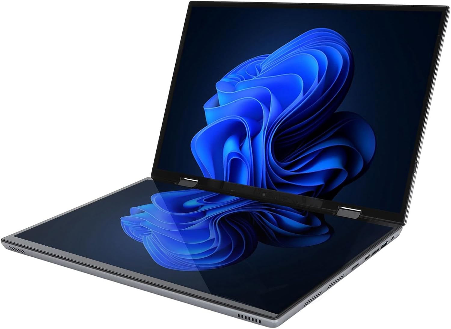 14inch Dual Screen Laptop, 2.2K HD Dual Touchscreen Notebook, 16GB 128GB SSD, Virtual Touch Keyboard, 360 Degree Flip and Fold, for Pro (UK Plug)
