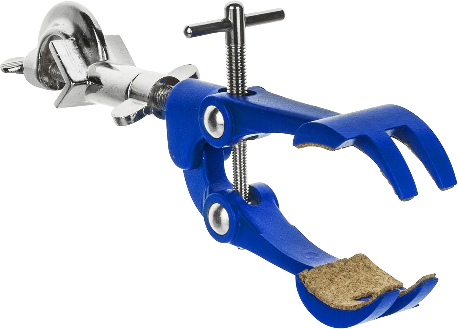 The clamp includes a high strength alloy Boss Head for securing the clamp to a frame or other apparatus. The Boss Head will accept a rod diameter of 18 mm (approximately 11/16″). The screw adjustment allows for precise pressure when gripping glass objects, to avoid potential breakage. Swivel between Clamp and Boss Head. Clamp is constructed of powder coated high grade zinc alloy. Due to the cork lining it is not recommended that the prongs of the clamp are placed in direct heat. Ideal uses for beakers, Erlenmeyer flasks, test-tubes, boiling (Florence) flasks, burettes. Eisco Labs proudly manufactures its own products using state-of-the-art equipment, and following the highest standards of quality control. Each product is carefully designed by a team of laboratory professionals and experienced engineers with quality and durability in mind. They are manufactured with only the highest grade, raw materials and according to international quality standards to ensure that they can withstand use in even the toughest laboratory environments.
