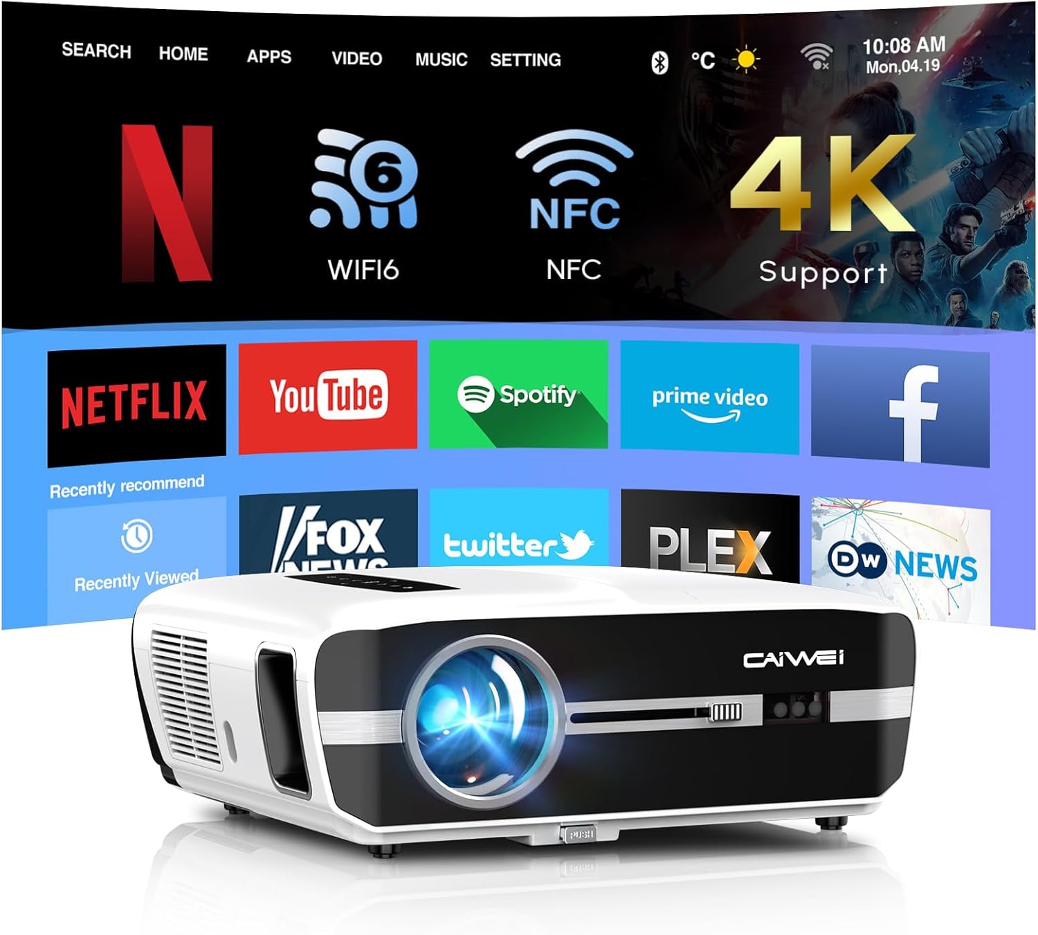 4K UHD Home Cinema Projector 1350ANSI Lumens for Daytime Use, WiFi6 Bluetooth 5.2 Smart Android Projector for Gaming Outdoor Movie Nights,Netflix YouTube Built in,NFC Casting, for Phone/Laptop
