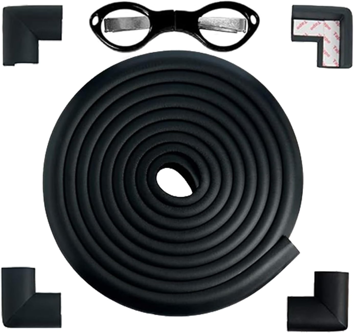 4M Baby Proofing Foam Table Corner Protectors for Baby, Baby Safety Guard Strip & Furniture Safety, Easy to Install and Protect Your Loved Ones with Adhesive 4 Corner protector Edge & scissor. (Black)