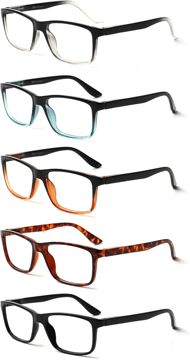 5 Pack Blue Light Blocking Reading Glasses for Men and Women Readers with Spring Hinges Fashion Eyeglasses
