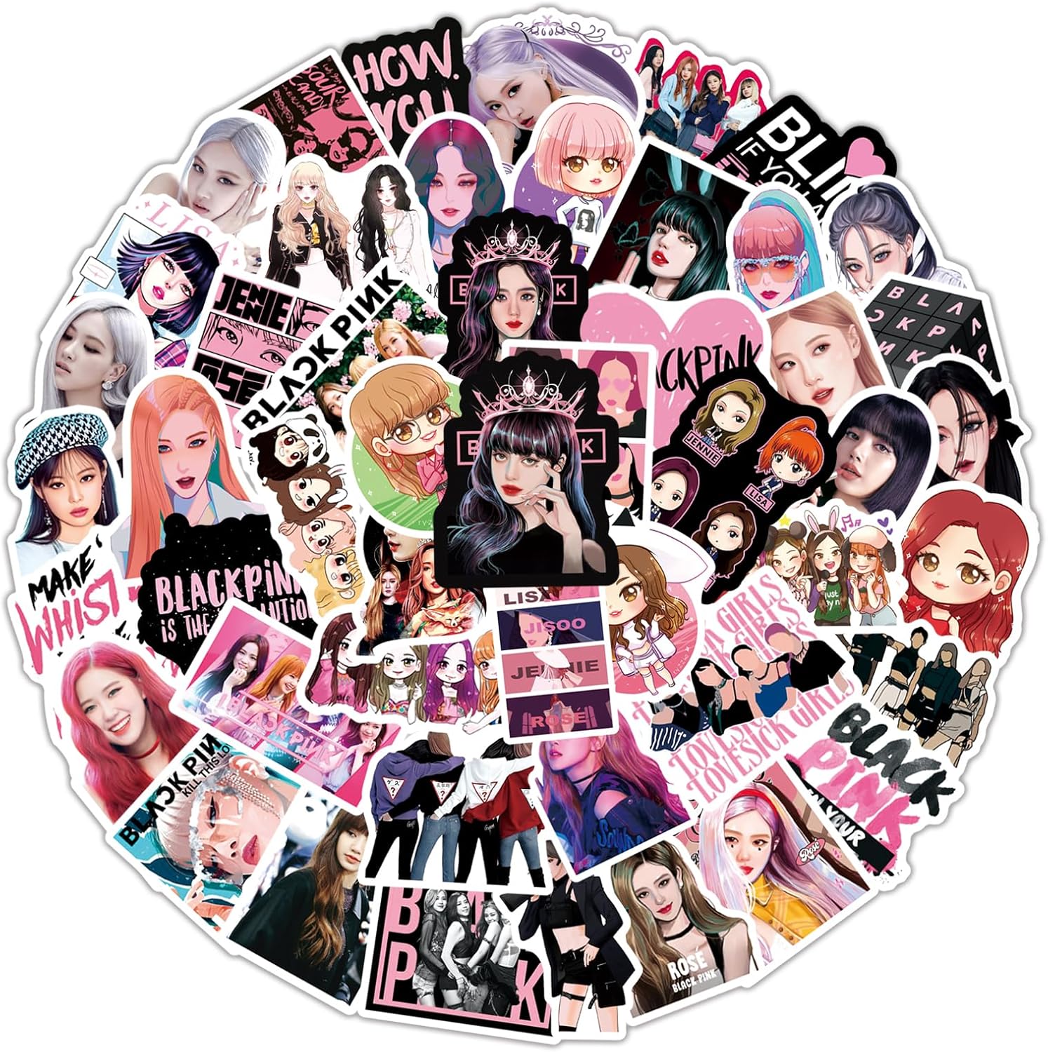 50pcs Cute Kpop Blackpink Stickers, Singer Waterproof Vinyl Decals for Teens Girls Laptop Phone Guitar Luggage Water Bottles Notebook Journal Skateboard (Black)
