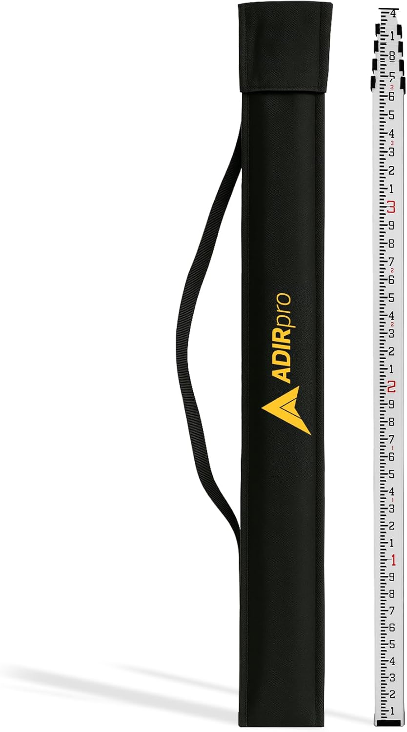 The AdirPro 16 Foot Aluminum Grade Rod 710-12 is ideal for leveling with construction laser and optical surveying tools. It is made of lightweight and durable aluminum alloy, with easy to read weather and corrosion resistant graduation and red foot markings for maximum visibility, as well as a special measuring scale on the back for overall height reading. Moreover, it is one of the most compact model of leveling rods and its very durable. The high quality leveling rod is 1+/-0.05mm thick and it’s four adjustable telescopic sections reach up to 16 feet and collapse to 51 inches. The rod also offers graduations on both sides -one side with markings in feet/inches/eighths and the other side with markings in metric. They have tight tolerances for easy gliding and large locking button to secure your sections and prevent slippage. This leveling rod’s rectangular shape ensures easy handling as well as flush alignment with flat surfaces. The AdirPro aluminum grade rod comes with a durable soft carrying case.