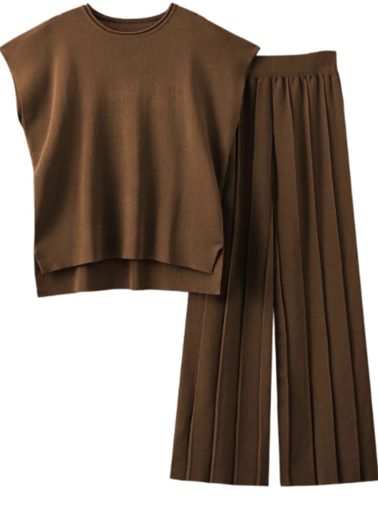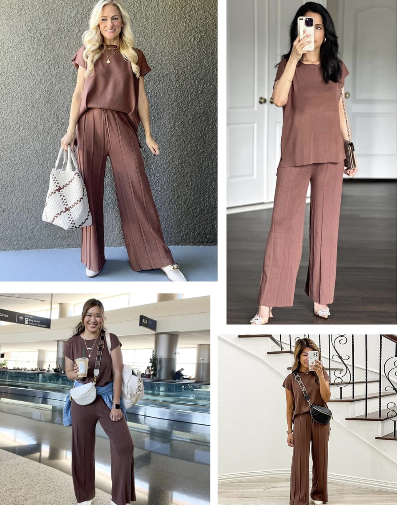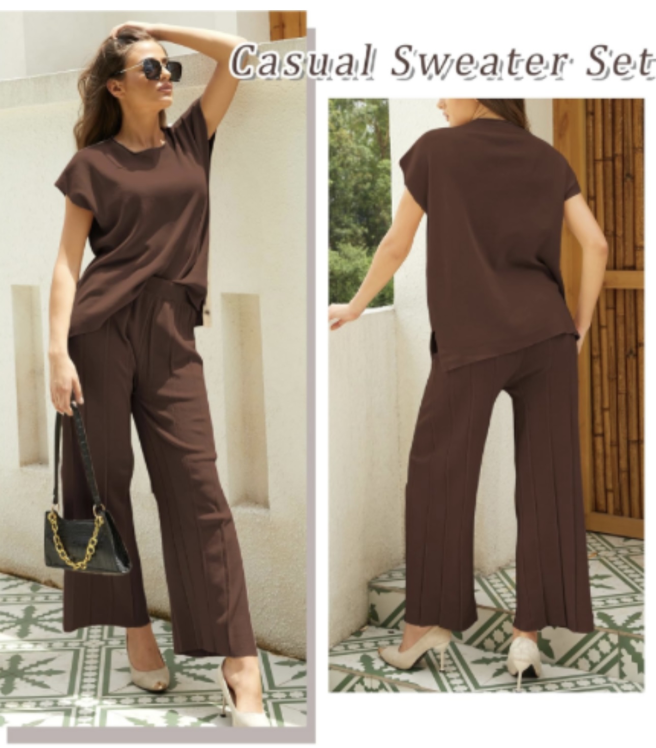 Aedceal Women’s Sweater Set 2 Piece Lounge Set Knit Pullover Tops Vest High Waisted Pants Outfits
