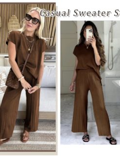 Aedceal Women’s Sweater Set 2 Piece Lounge Set Knit Pullover Tops Vest High Waisted Pants Outfits