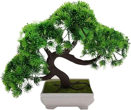 Artificial Plants, Artificial Bonsai Tree Fake Plant Potted Desktop Display Garden Decor Pine Tree Green