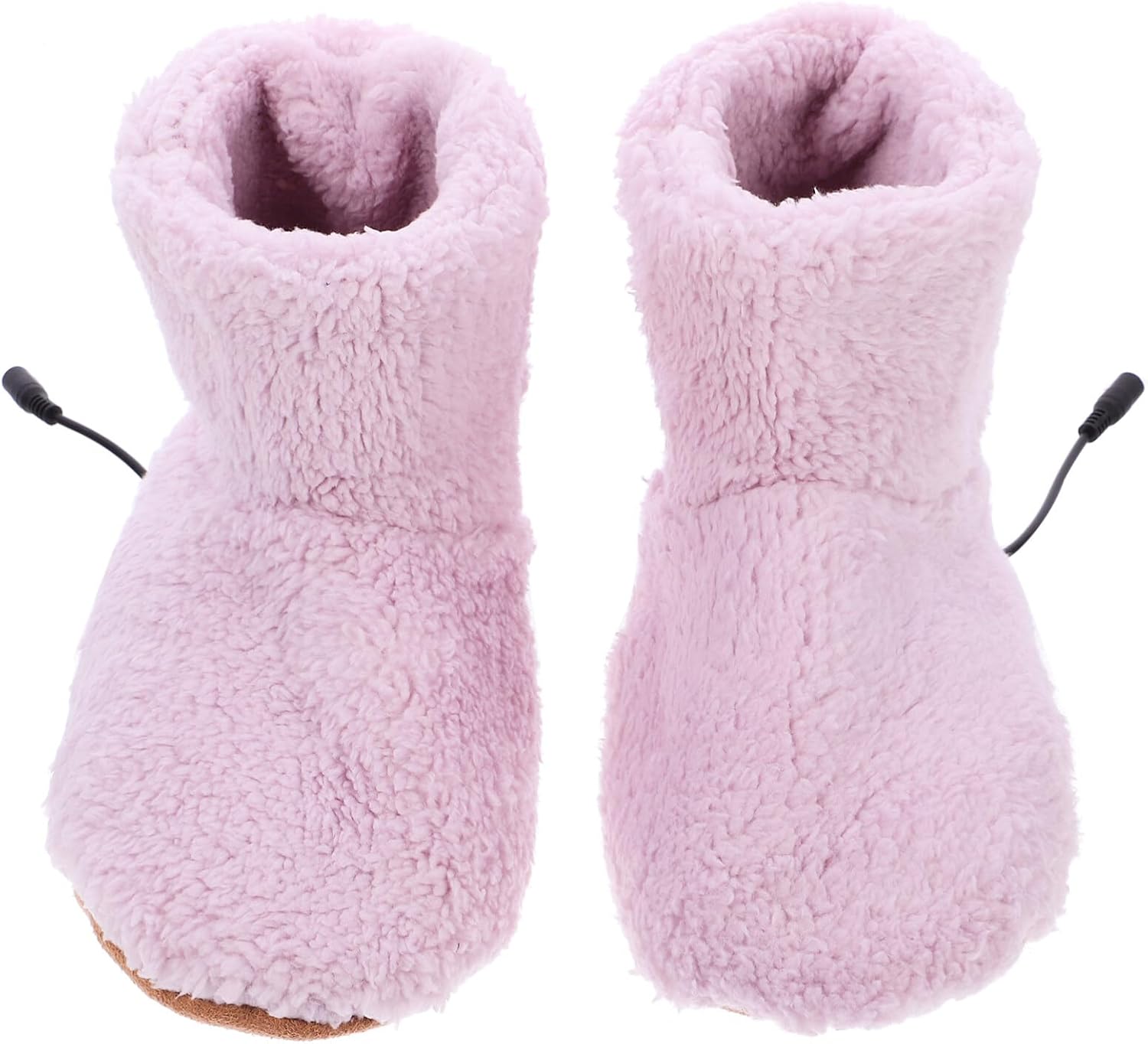 Baluue Electric Heated Foot Warmers, Usb Heated Shoe, Electric Heating Slippers, Foot Heaters, Fluffy Plush Foot Boot Heater for Men Women Pink
