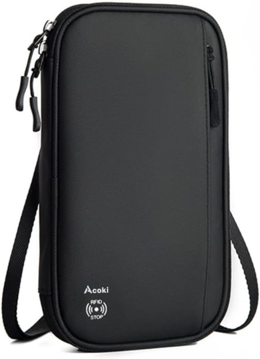 Bhuuno Acoki Travel Wallet RFID Blocking,Faimly Passport Holder for Men Waterproof Passport Wallet,Large Capacity Passport Cover Travel Document Holder for Passports,Cards,Flight Tickets,(Black)