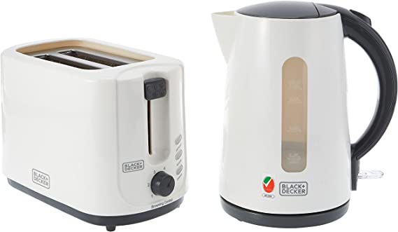 Black+Decker 2 Slice Toaster + 1.7L Electric Kettle Breakfast Set, White – MBF70-B5,