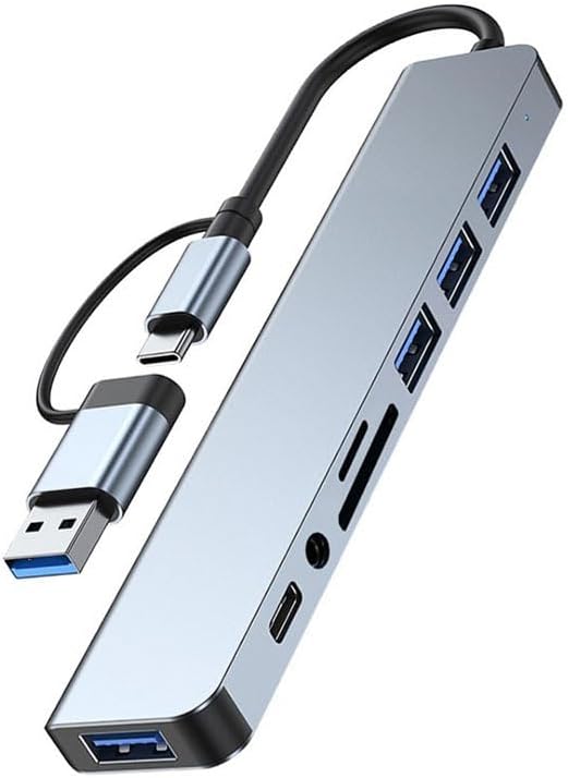 BODANBRO USB3.0&USB-C 8-port hub with Type-C, USB3.0, 3USB2.0, SD/TF Card Reader, 3.5mm Audio Compatible with Mac Book Pro and More USB/Type C Devices