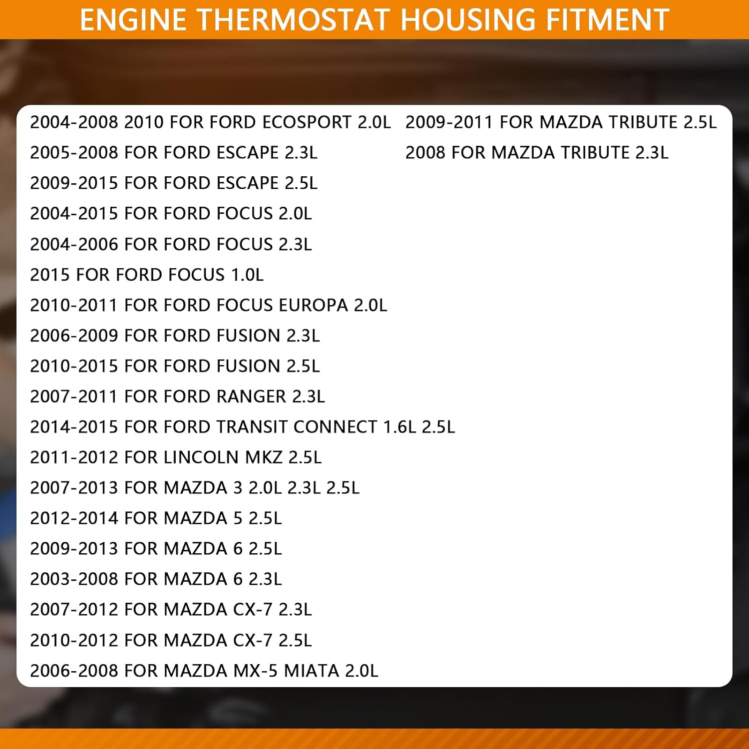 - Fitment-2004-2008 2010 for Ford Ecosport 2.0L, 2005-2015 for Ford Escape, 2004-2015 for Ford Focus, 2006-2015 for Ford Fusion, 2007-2011 for Ford Ranger 2.3L, 2014-2015 for Ford Transit Connect 1.6L 2.5L, 2011-2012 for Lincoln MKZ 2.5L, 2007-2013 for Mazda 3, 2012-2014 for Mazda 5, 2009-2018 for Mazda 6, 2007-2012 for Mazda CX-7, 2006-2008 for Mazda MX-5 Miata, 2008-2011 for Mazda Tribute