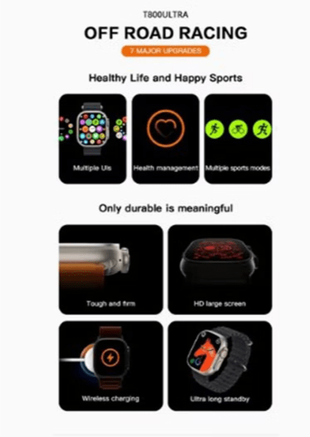 Overview1.99 inch high definition big screen smart bracelet and earphone with charging case. Supports bluetooth and Android Wear system. Long battery life and low power consumption management system. Made of lightweight skin-friendly design, comfortable and no feeling to wear.