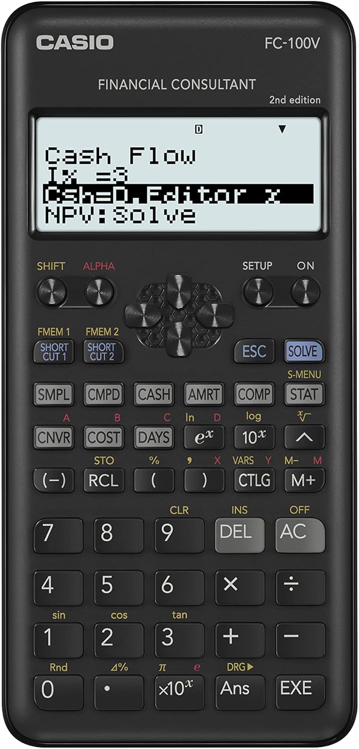 Casio FC-100V-2-W-ET Financial Calculator Second Edition, Black
