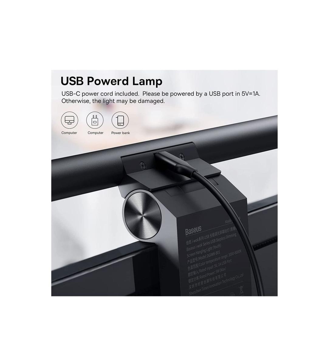 Computer Monitor Light Screenbar, E-reading USB Powered Monitor Clamp Lamp, Dimmable Eye Protecting Lamp, With adjustable brightness, Color Temperature Over Monitor Light Bar, Black