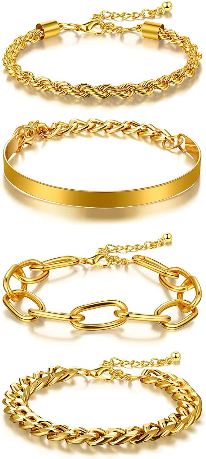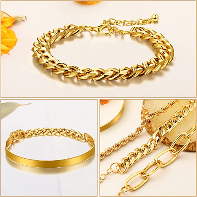 - ☼【LIGHTWEIGHT TO WEAR】These adjustable layered metal link bracelets are made of quality electroplated alloy material, which is reliable and sturdy, odorless and safe to use, skin-friendly and lightweight, comfortable to wear, you don’t have to worry about rusting or causing skin discomfort