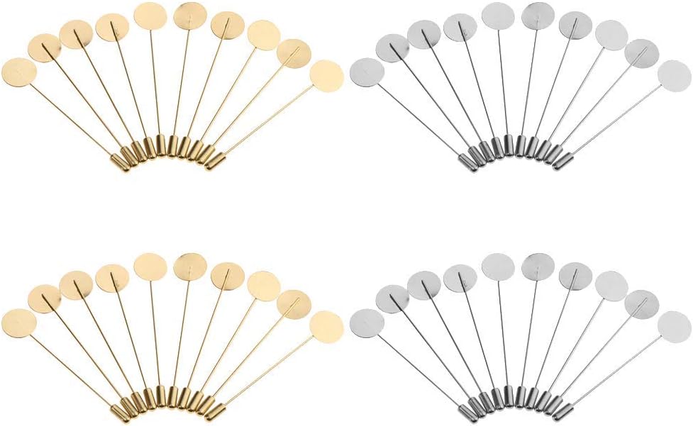 DonLeeving Luckycivia 40 Pcs Silver Gold Tone Round Tray Lapel Pin Stick, Blank Brooch Pin for Men Women Suit Tie Hat Scarf Badge, Stainless Steel Safety Pins Brooches, DIY Costume Jewelry Accessories