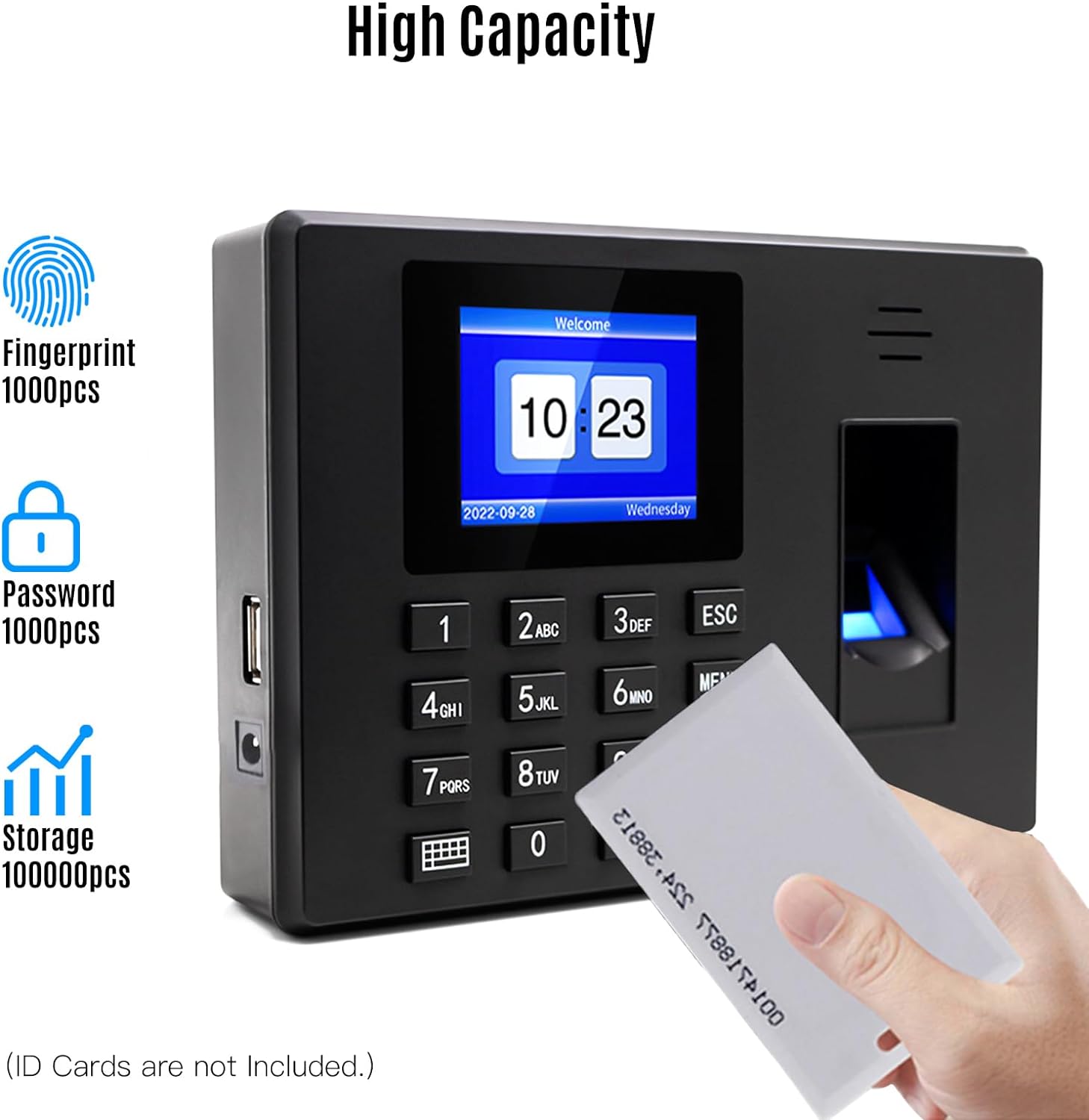 ✔ Large Capacity: This Attendance Machine can input up to 1000pcs fingerprint, 1000 password memory, and it supports 100000 data record as well, suitable for company with multiple departments.