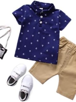 Navy Blue Top and Beige Shorts Clothing Set for Your Baby Boy