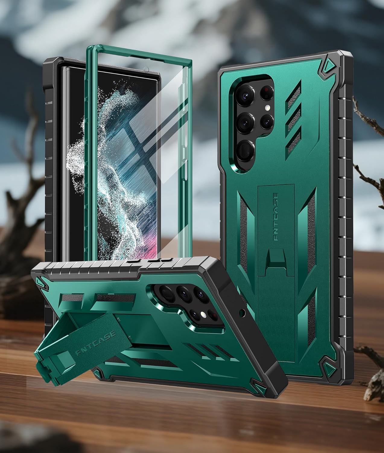 for Samsung Galaxy S22 Ultra Case Military Grade Drop Proof Protection Mobile Cover with Kickstand | Matte Textured Rugged Shockproof TPU | Protective Sturdy Phone Case – Emerald Green