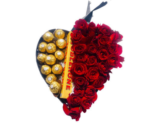 12 Ferrero Rocher chocolate, 25 roses, 1 toblerone