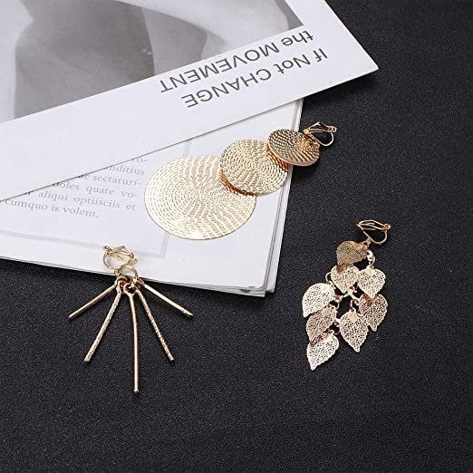 - 【 MATERIAL 】The earrings are made of environmentally friendly alloy .This earrings without pierced, suitable for people without pierced ears. The non pierced earrings are available in two colors: silver and gold.