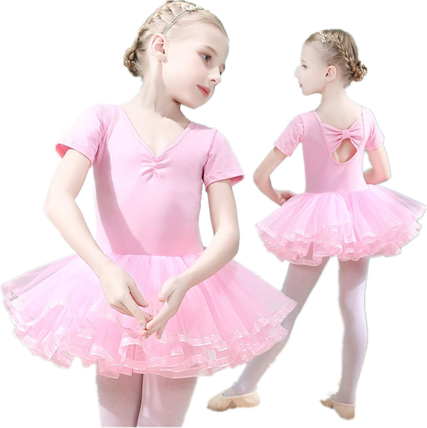 Girls Ballet Dress Tutu Slim Dance Leotards Dress Short Sleeve Dress (7-8 Years Old)