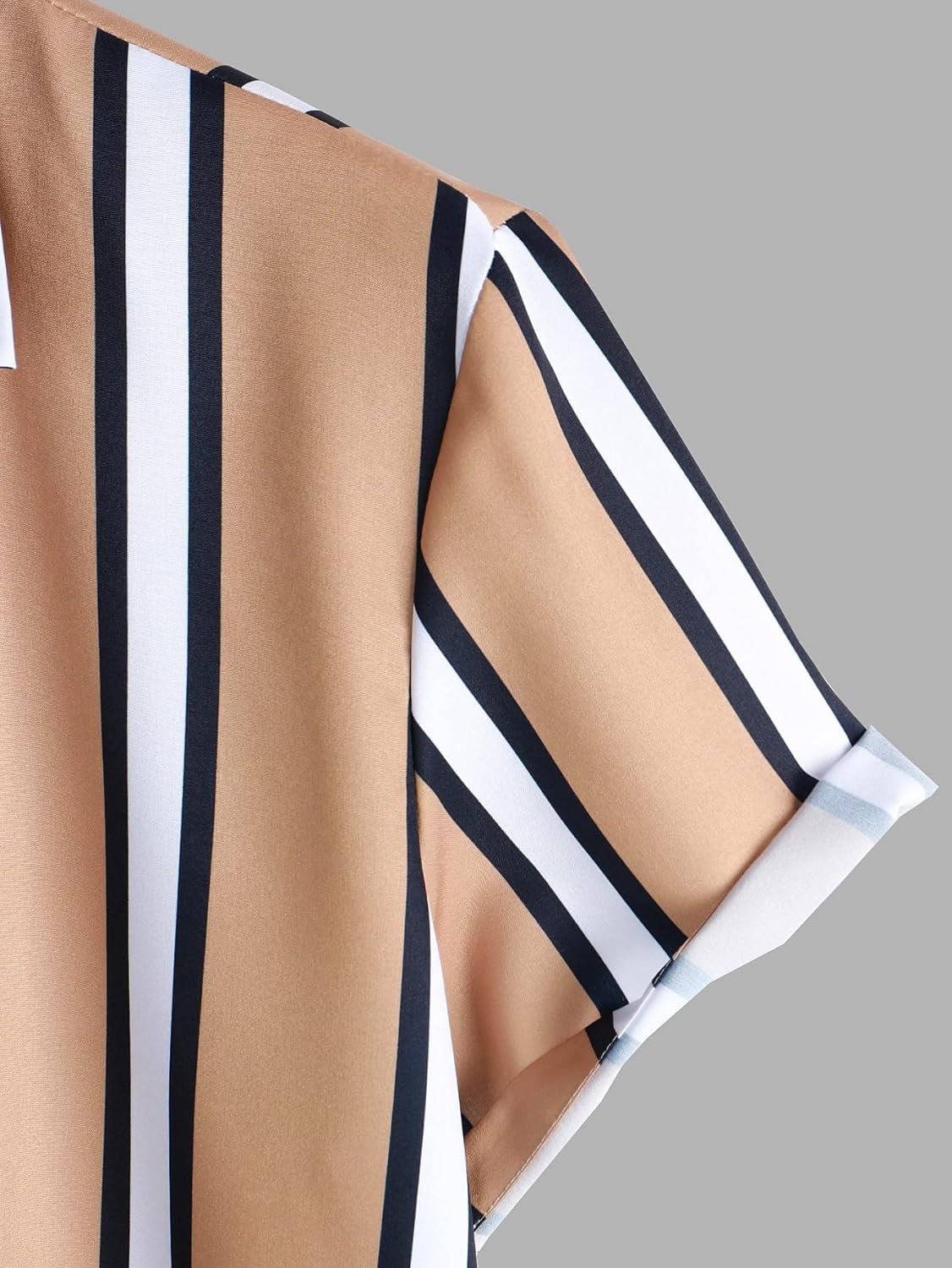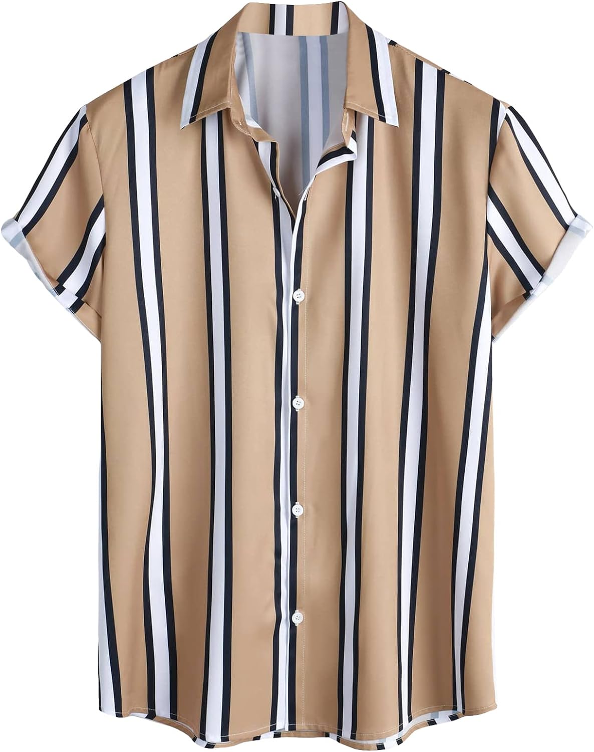 GORGLITTER Men’s Striped Print Button Down Collar Neck Short Sleeve Shirt Top