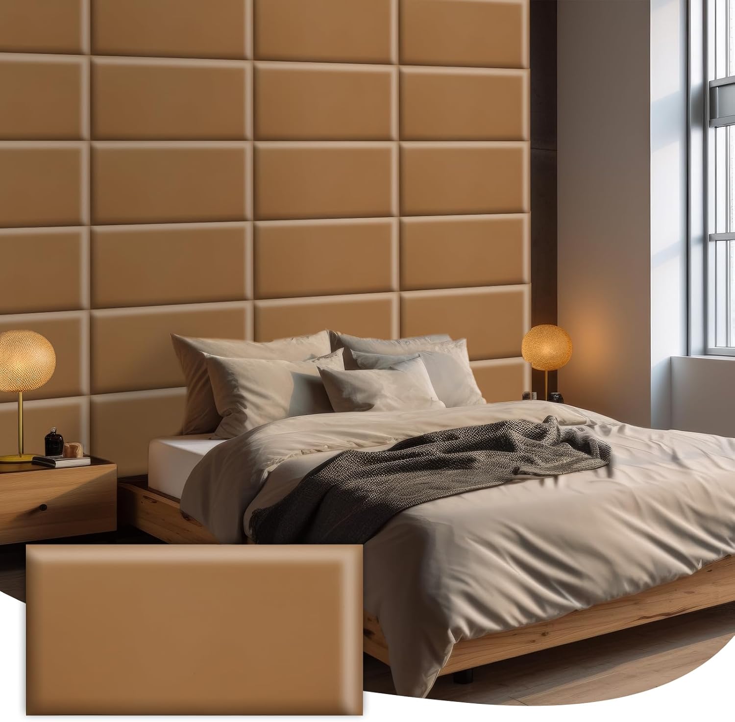 Hanaive Peel and Stick Headboard 23.6” x 11.8” Upholstered Wall Panels for Twin, Queen and King 3D Anti Collision Wall Panel Reusable and Removable Padded Wall Panel for Bedroom (Coffee,12 Pcs)