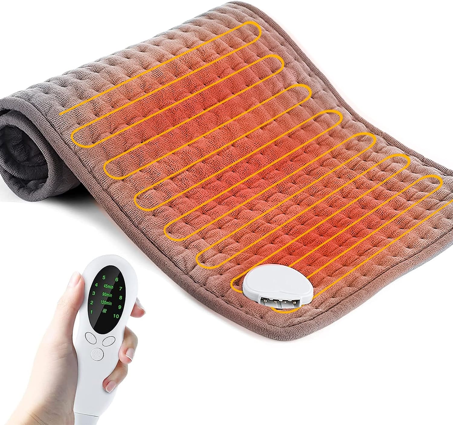 3-Gear Timing & Security: The heat pad has a timing function, providing 3 timing automatic shutdown ranges: 45 minutes, 90 minutes, 120 minutes for customized warmth to relieve pain. When the set time is reached, the heating pad will automatically turn off. It not only saves energy but also prevents burns caused by overheating, which is very safe and energy-saving.