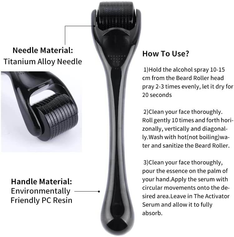 - BLACK BEARD DERMA ROLLER–The small needles of the beard roller puncture the skin.Cell proliferation The body recognizes this damage and begins the healing process,Remodeling Circulation improves, nutrient & hormone-rich blood rushes to the beard area.