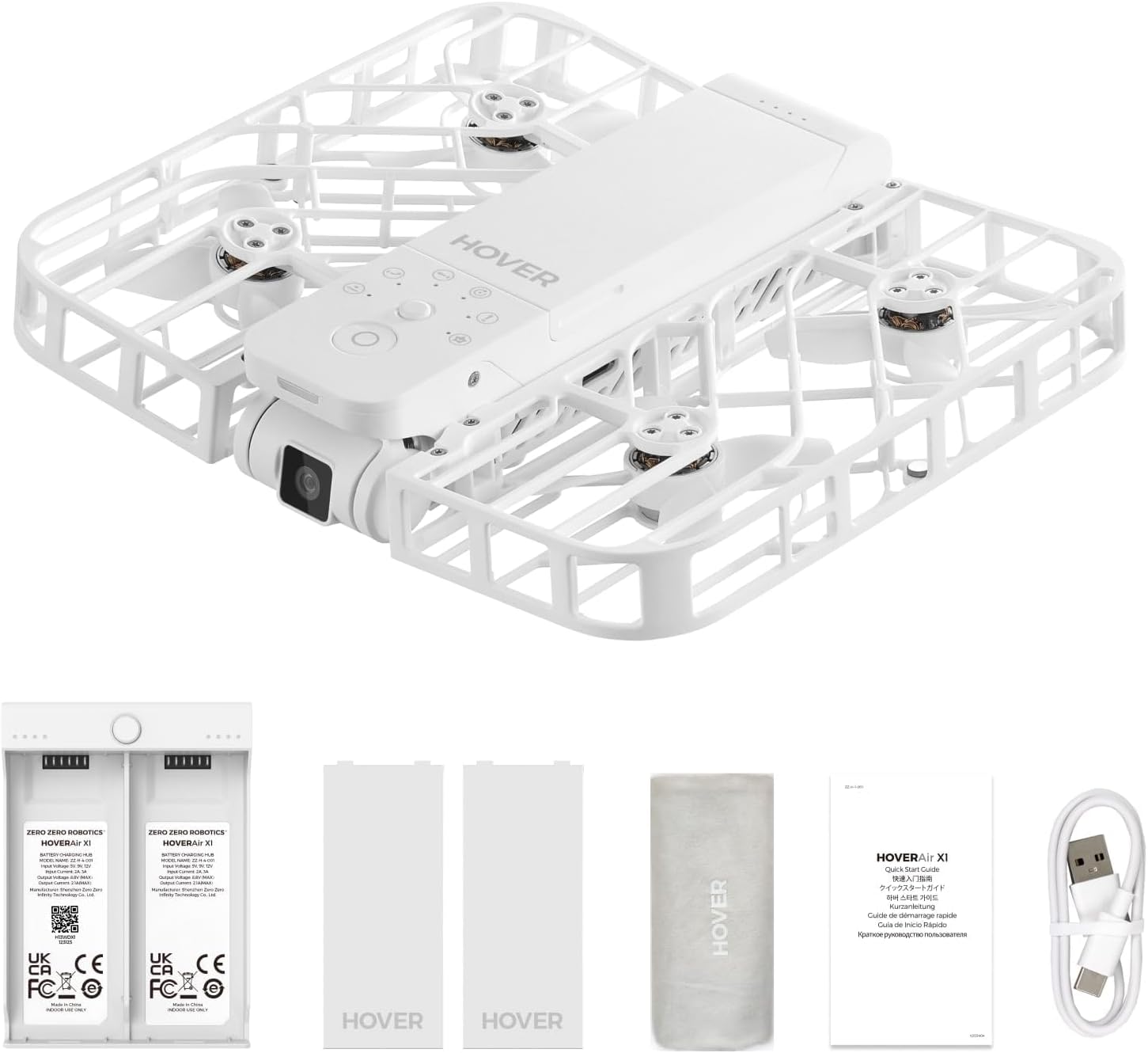 HOVERAir X1 Self-Flying Camera, Pocket-Sized Drone HDR Video Capture, Palm Takeoff, Intelligent Flight Paths, Follow-Me Mode, Foldable Action Camera with Hands-Free Control White (Combo Plus)
