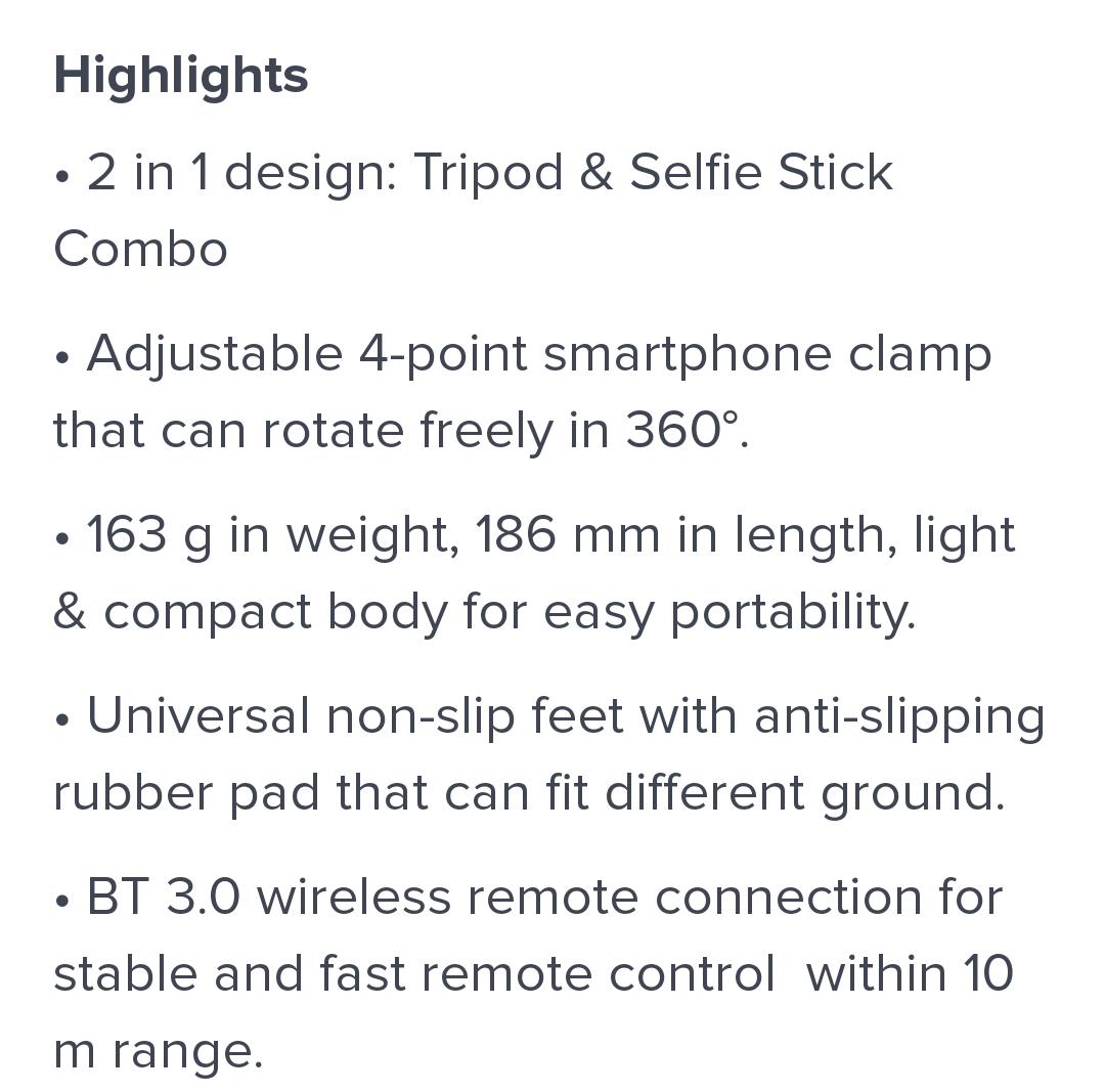 Huawei Wireless extendable Tripod Travel Selfie Stick with remote