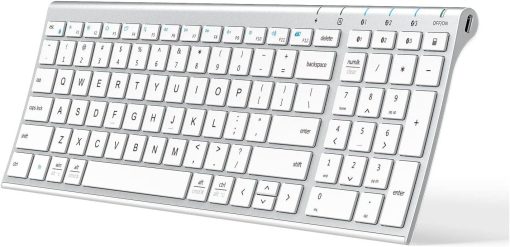 iClever Bluetooth Keyboard BK10, Multi Device Keyboard Rechargeable with Number Pad Ergonomic Design Full Size Stable Connection Keyboard for iPad, iPhone, Mac, iOS, Android, Windows