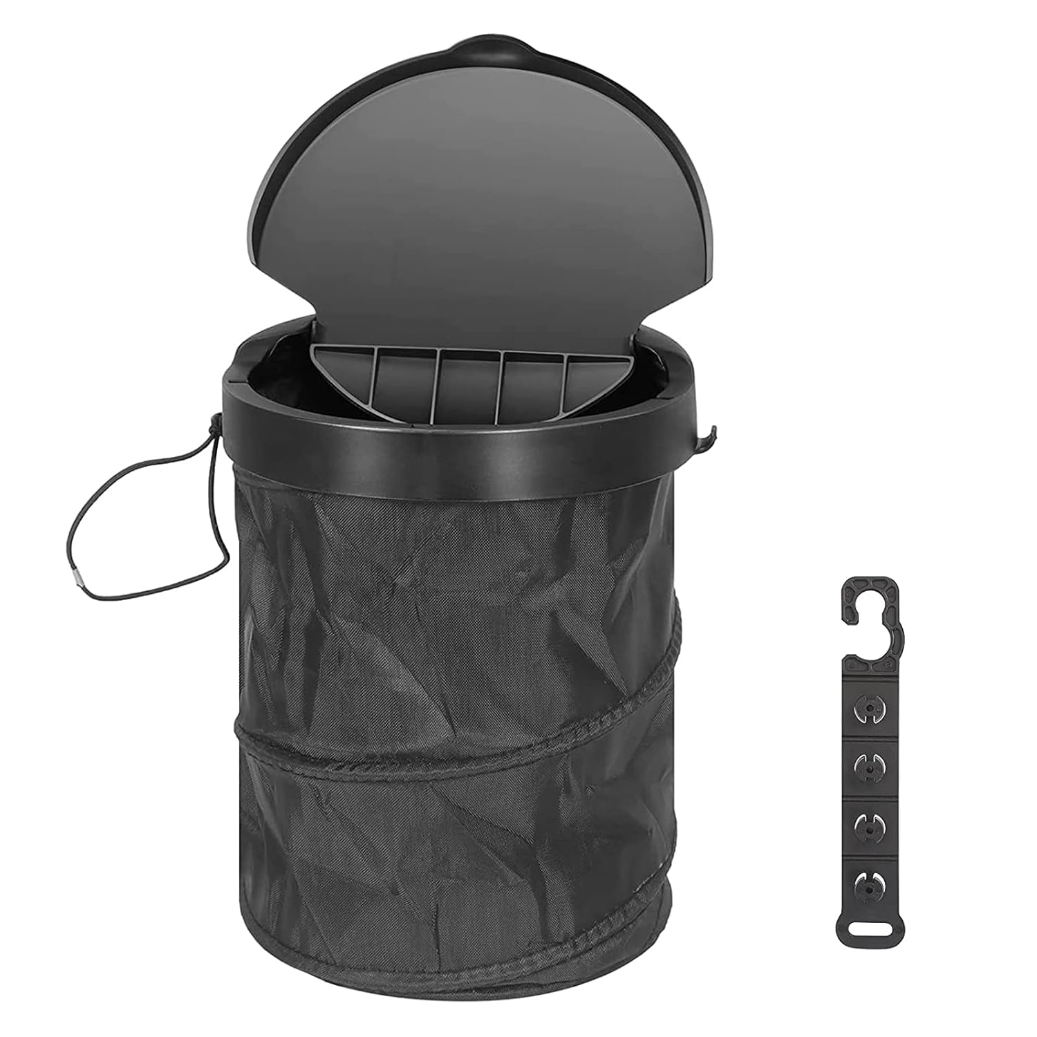 ikeoat Car Trash Can with Lid, ikeoat Collapsible Pop Up Cars Trash Bin Container Leak-Proof Waterproof Portable Garbage Storage Bag Multifunctional Organizer Trash Can Bin with Hanging Hook Black