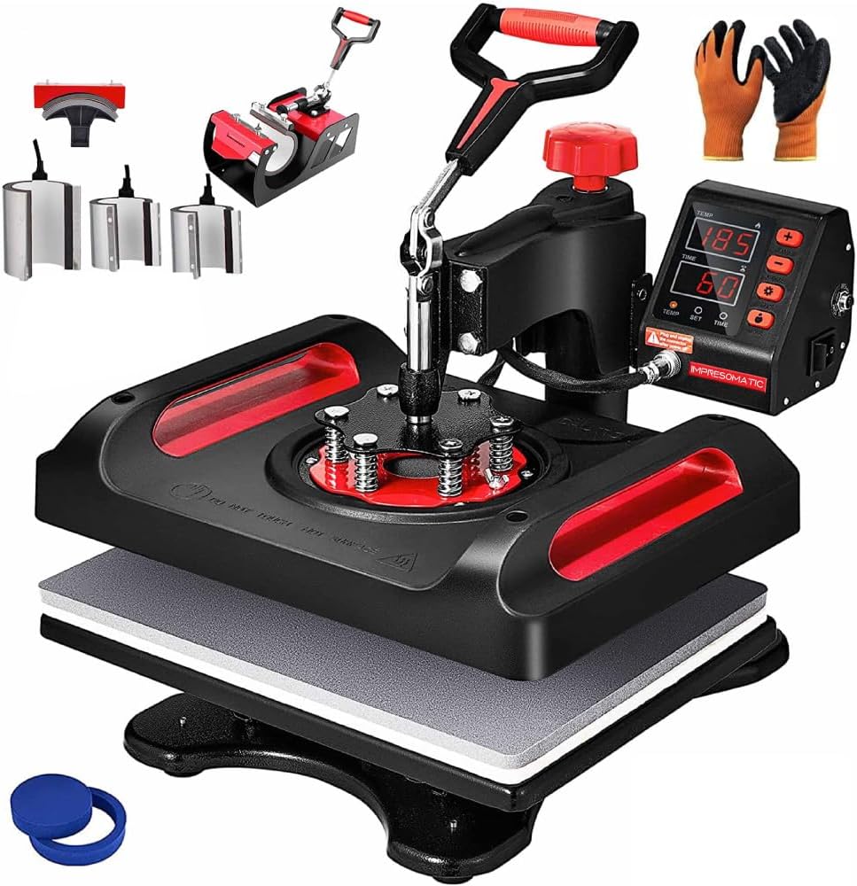 Impresomatic Heat Press Machine Combo Package Printer Transfer Sublimation Machine for T-Shirts, Hat, Mug, Plate, Cap, with Digital Display and 360-Degree Swing Arm (8 IN 1)