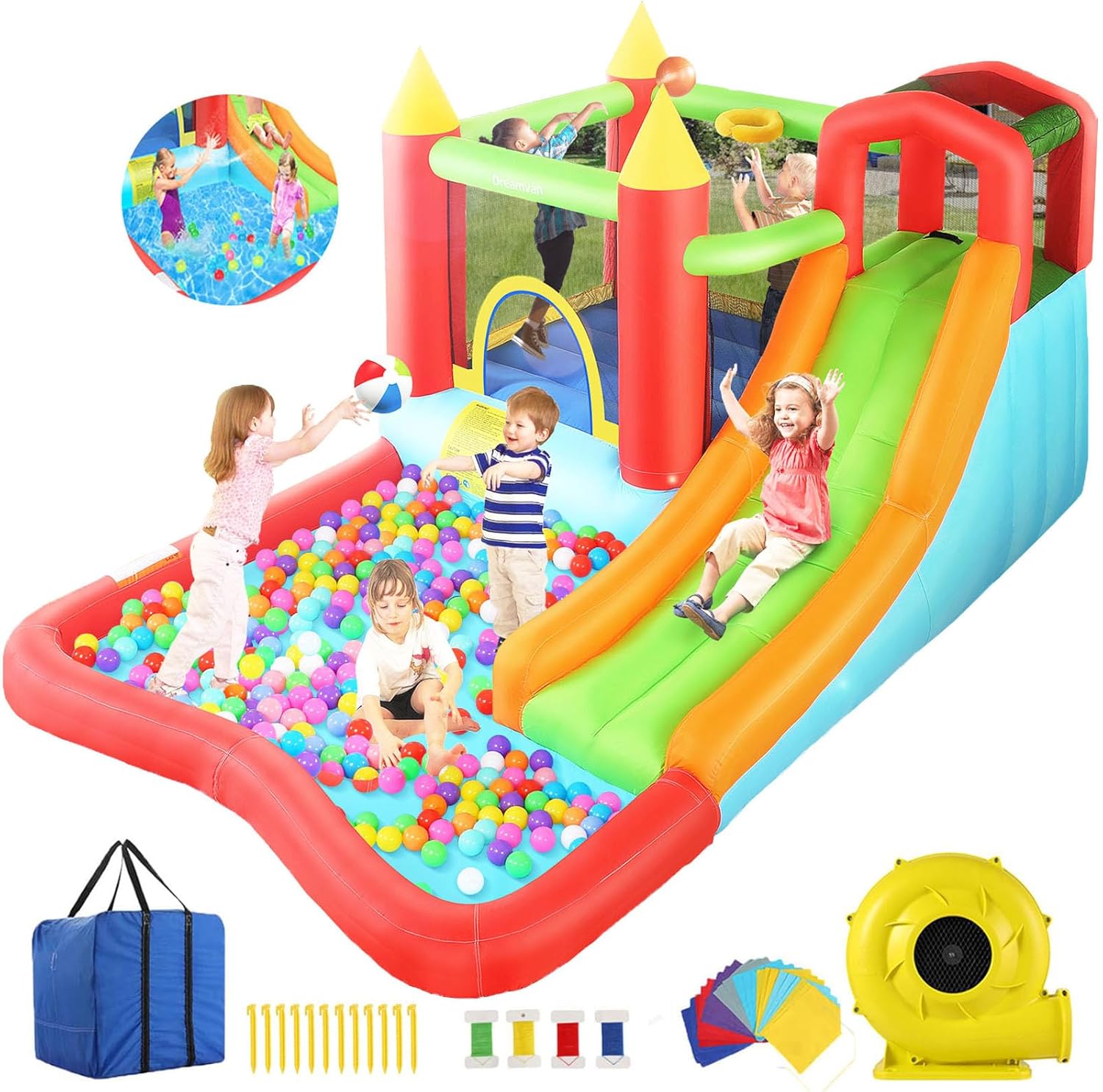 Inflatable Castle Bounce House with Slide |Bouncy House for Kids Indoor/Outdoor Inflatable Bouncer Castle,Includes GFCI Blower Stakes &Repair Kit Party Fun for Hours,Best gift for Kids Ages 3-10 Years