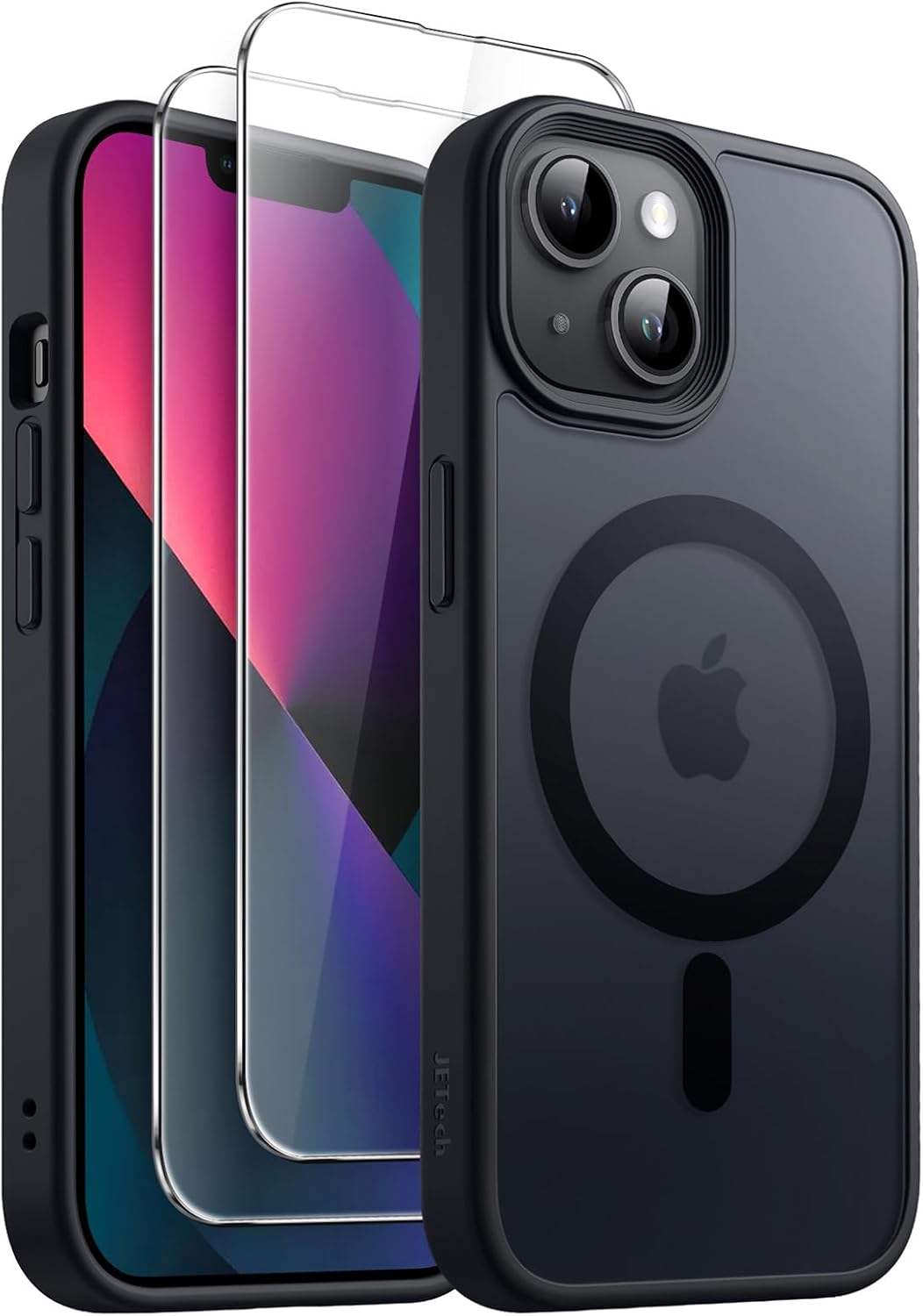 JETech 3 in 1 Magnetic Case for iPhone 13 mini 5.4-Inch with 2 Pack Tempered Glass Screen Protectors, Compatible with MagSafe, Translucent Matte Back Shockproof Phone Cover (Black)