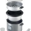 Includes additional tray for steaming fish or vegetables