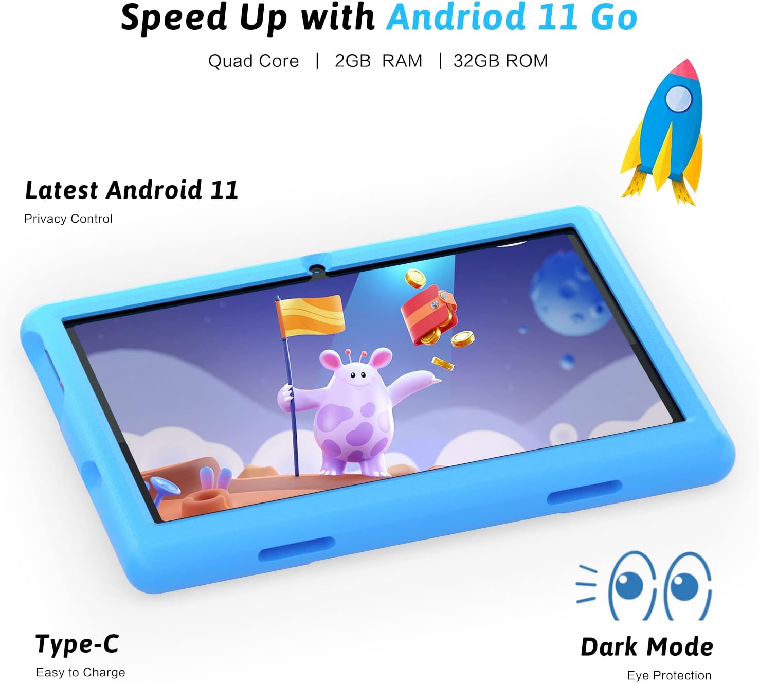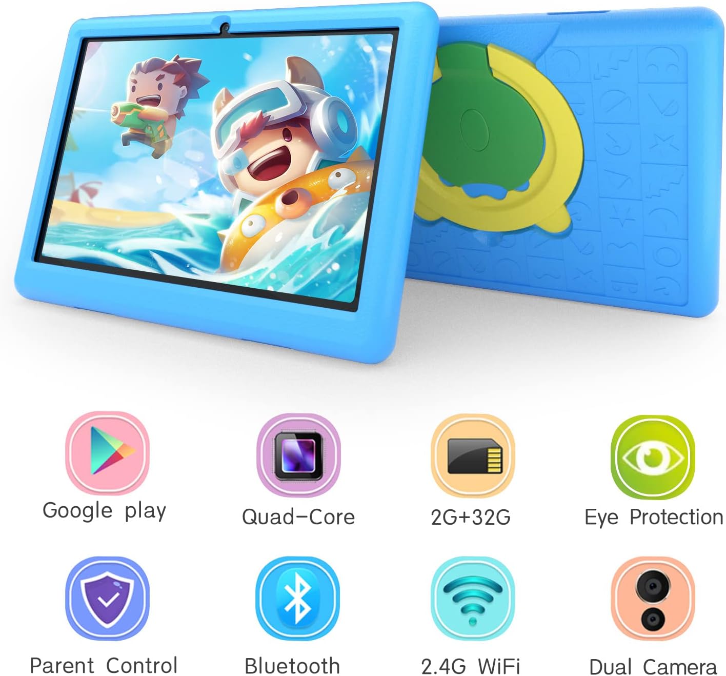 Kids Tablet 10.1″ HD Touchscreen Eye Protection LCD Android 12 Tablets for Kid Quad Core Processor 5000mAh Battery WiFi Bluetooth Dual Cameras Shockproof Case (Blue)