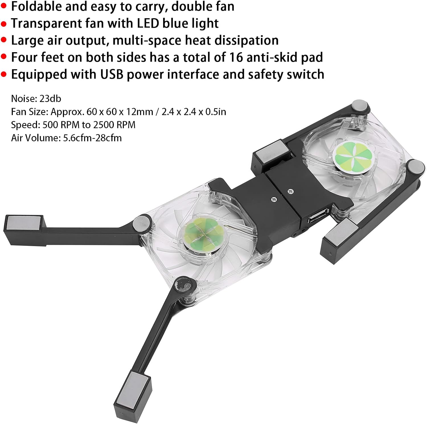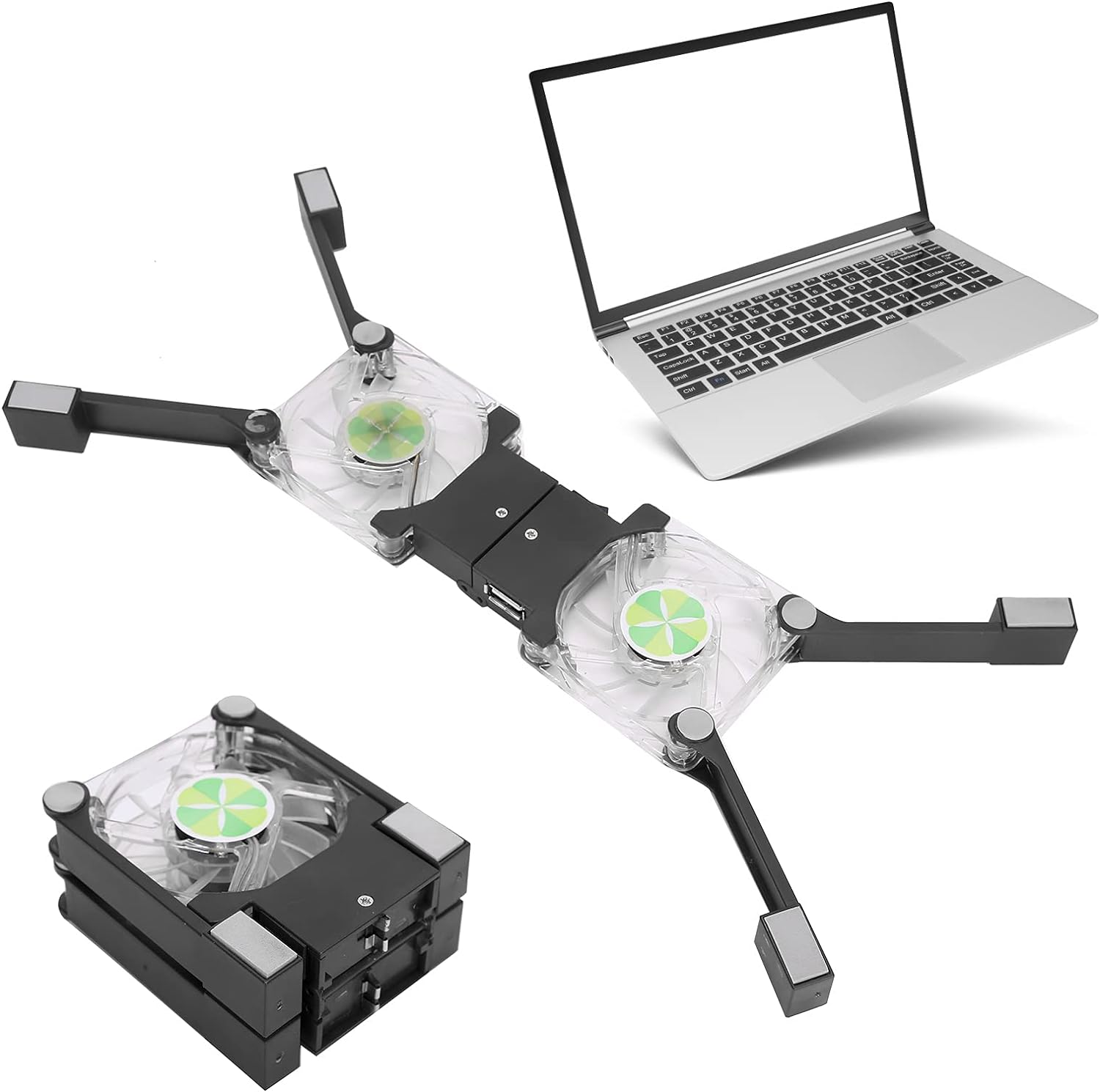 Laptop Cooling Pad, Portable Laptop Cooling Fan Stand, Folding Laptop Cooling Pad Double Fans LED Blue Light Notebook Computer Cooler(Black)