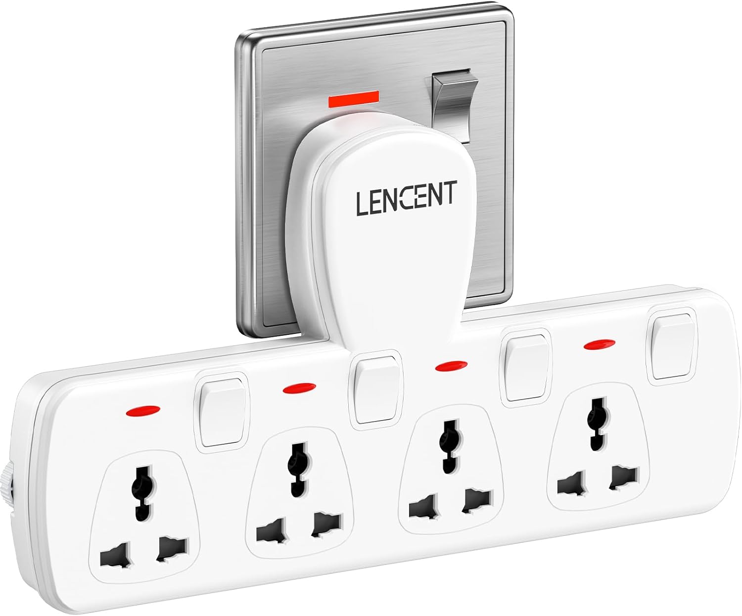 LENCENT Multi Plug Extension Socket, 4 Way Electrical Outlet Extender, Wall Charger, Universal Plug Adapter, Charging Station for Home, Office, Kitchen, Individually Switched
