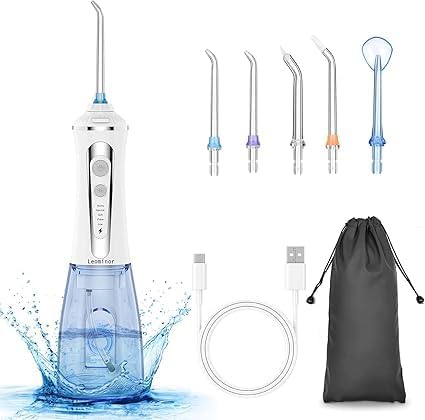 Leominor [2023 New Version]Leominor Cordless Water Flosser Professional Oral Irrigator,Portable Dental Flosser IPX7 Waterproof,with Travel Bag and 7 Jet Tips, Rechargeable for Home&Travel