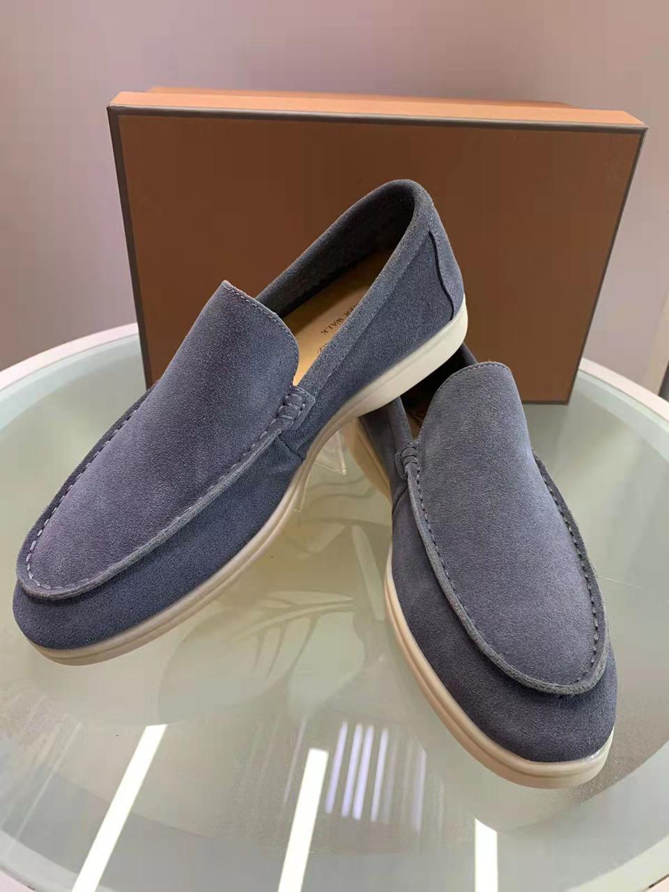 With suede uppers and off-white rubber soles, these loafers from Loro Piana have a slip-on design for a casual silhouette.