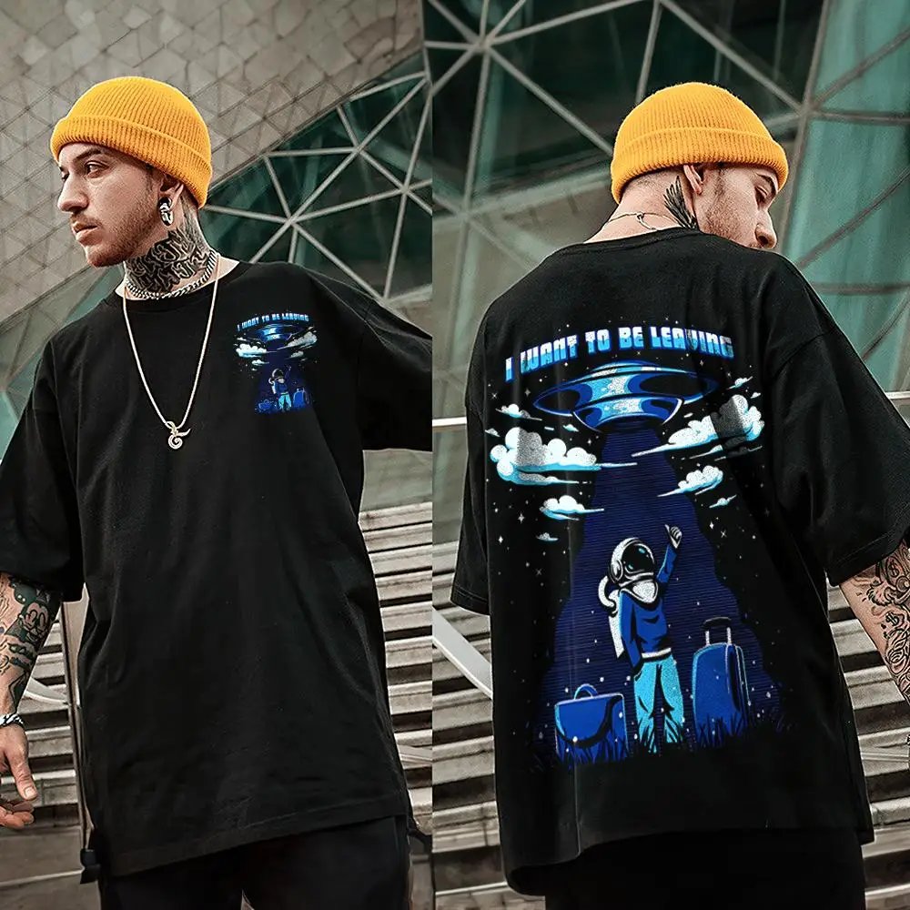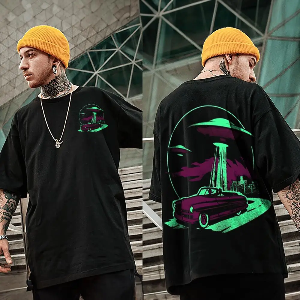 Mens T Shirt Trendy Alien Pattern Print T-Shirt Tops Summer Hip Hop Leisure Street Short Sleeve Clothing New Men O Neck Blouse