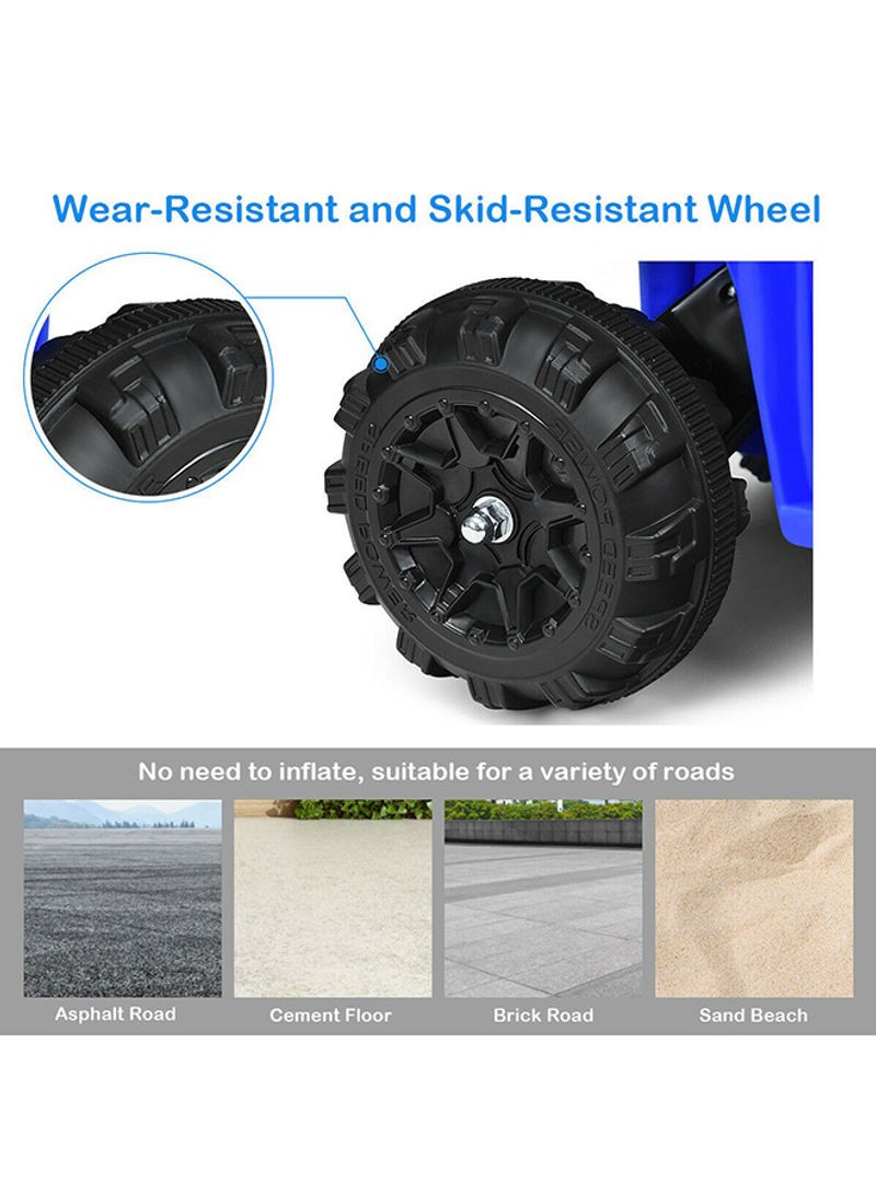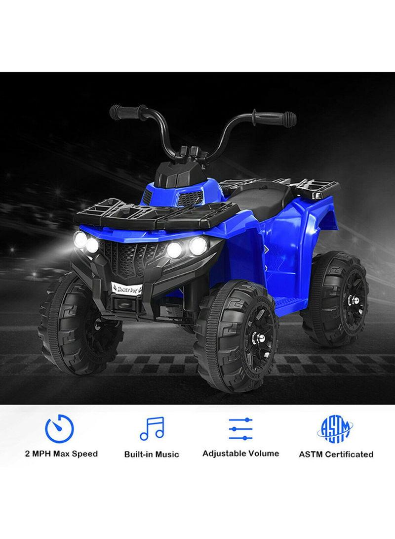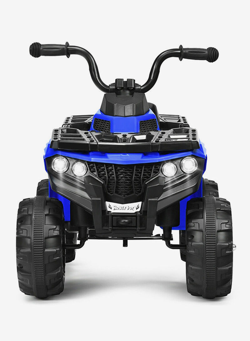 OverviewAn ideal ride on quad By Megastar for your Adventurous children! Two modes are available to control this car for more flexibility. When this car is fully charged, your baby can continuously play it by 60 minutes which makes sure that your baby can abundantly enjoy it. Comfortable seat with safety belt provides large space for your baby to sit (the safety belt enclosed is only as a substance to increase children’s safety awareness, please keep an eye to your baby when he/she is playing).Equipped with MP3 input, movable wing mirrors, horn, working headlights, high/low speed switch. Please drive it on flat surface for better enjoyment.