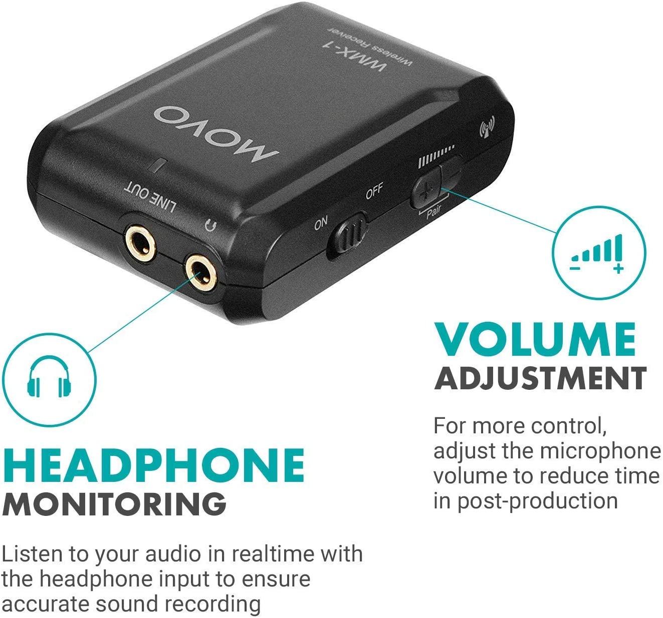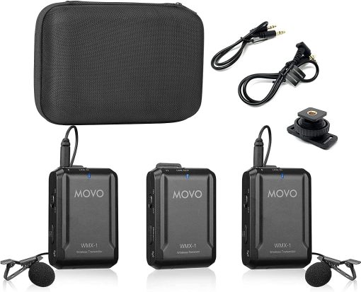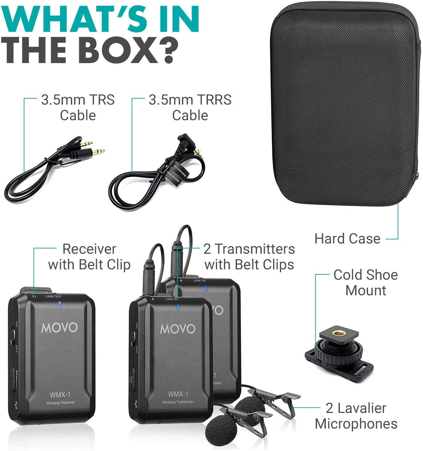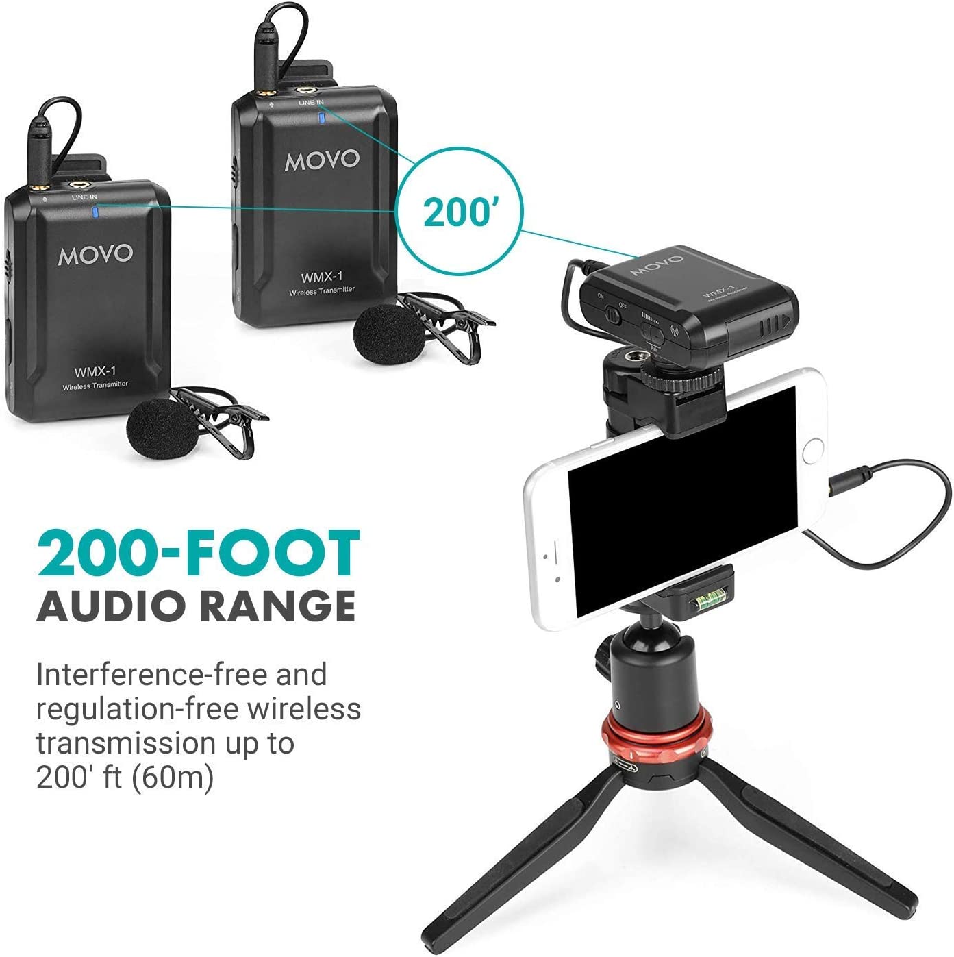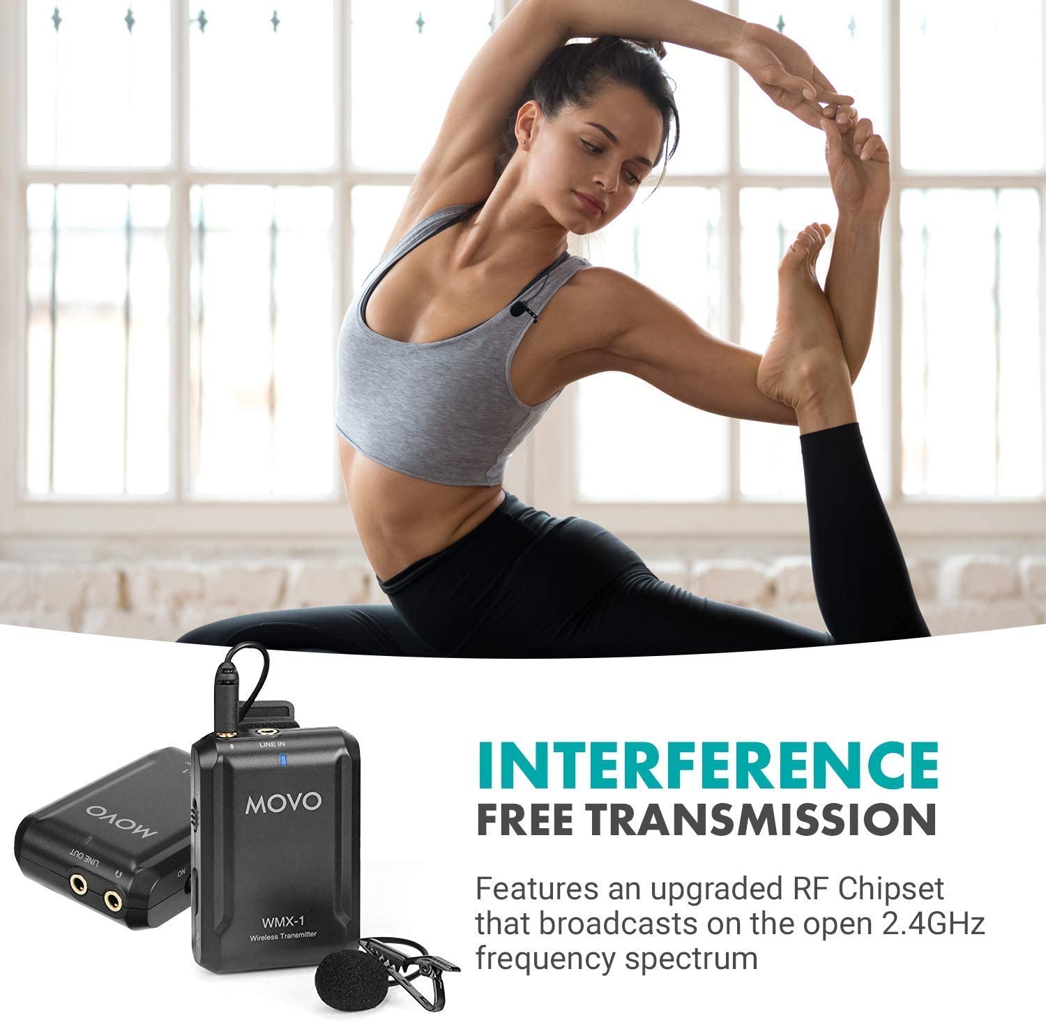 Movo WMX-1-DUO 2.4GHz Dual Wireless Lavalier Microphone System Compatible with DSLR Cameras, Camcorders, iPhone, Android Smartphones, and Tablets (60m Audio Range) – Great for Teaching Tutorials