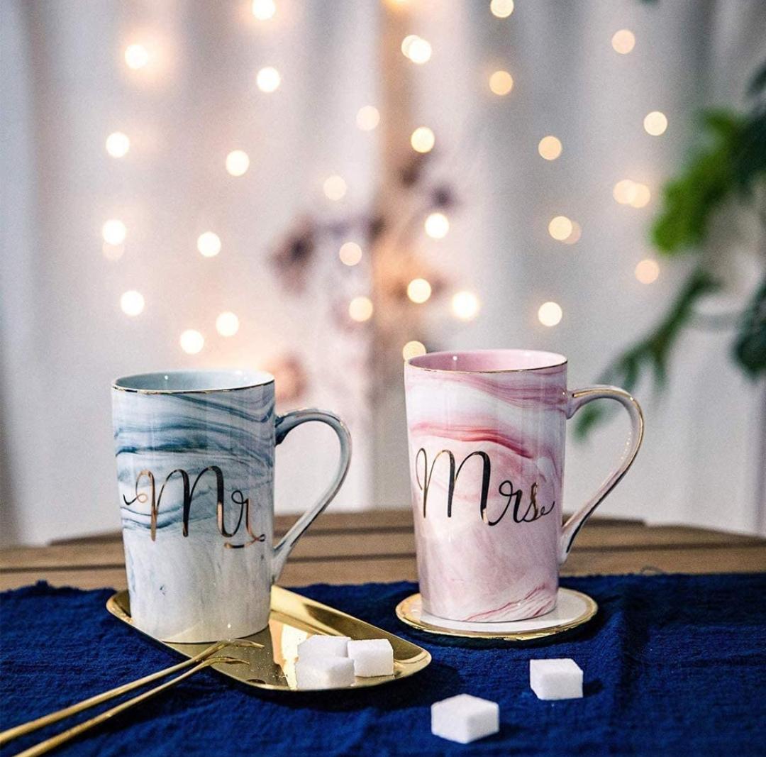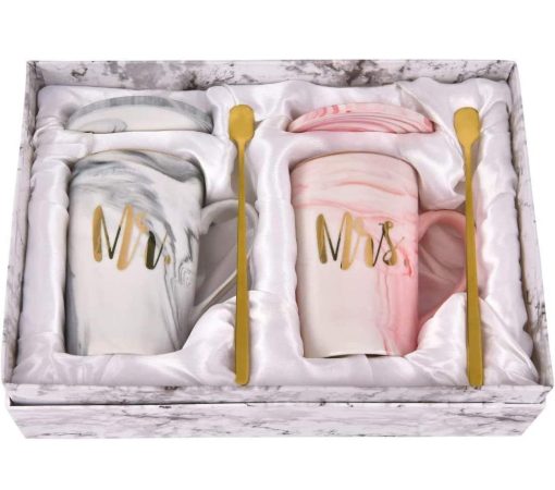 - ✔❤Gift Box Packing❤:Stylish Packaging with Silk-Finished Interior. This item is ready for gift giving. No need to repackage.2 x 14 oz mug(Grey&pink),2 x cup lid, 2 x spoons.Larger size mugs and more accessories offered,meet your further coffee drinking need or gift giving need!