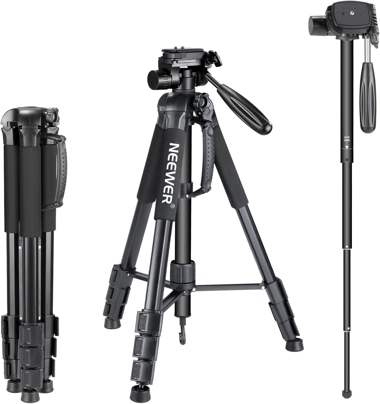 Neewer Portable 70 inches/177 centimeters Aluminium Alloy Camera Tripod Monopod with 3-Way Swivel Pan Head,Bag for DSLR Camera,DV Video Camcorder,Load up to 8.8 pounds/4 kilograms Black(SAB264)
